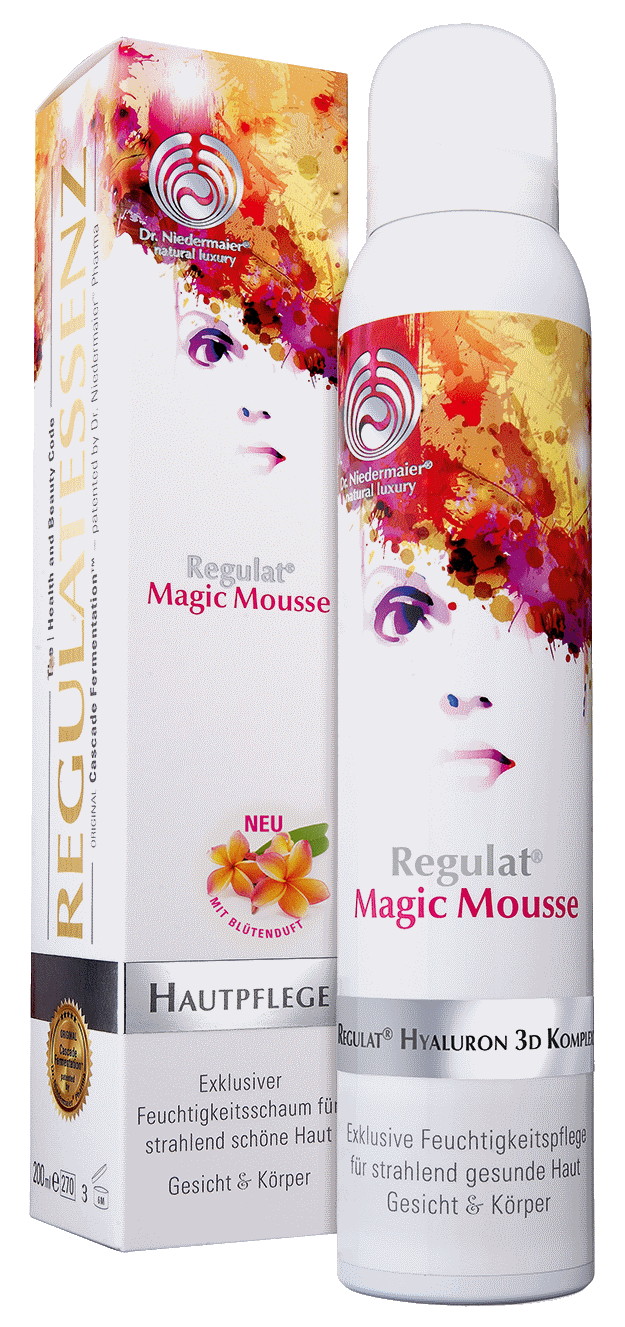 Der hochwirksame Regulat® Magic Mousse enthält die einzigartige Regulatessenz in Kombination mit einem hochdosierten Gehalt vom Faltenkiller Hyaluron und pflegt neben Gesicht auch den Körper intensiv mit wertvoller Feuchtigkeit.
