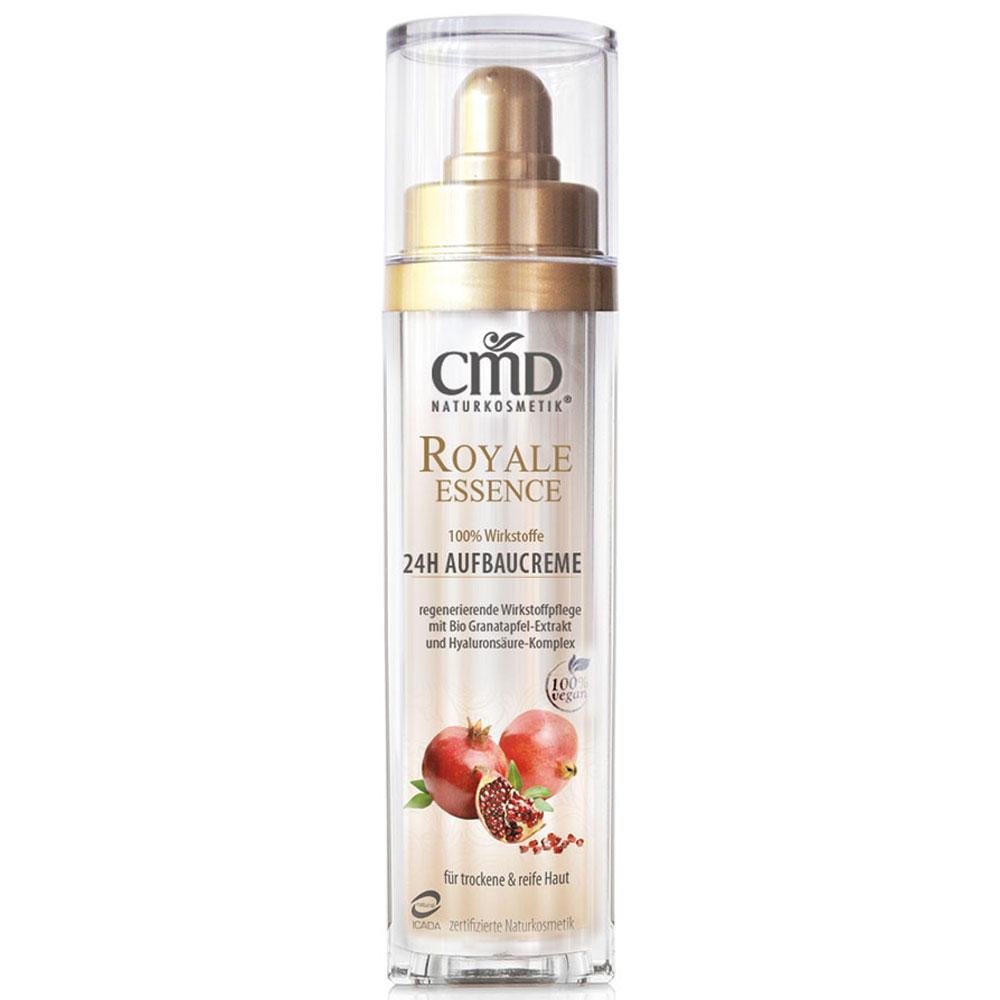 The Royale Essence Regenerating 24h Cream by CMD is suitable for protecting and regenerating demanding and dry skin types. It contains a blend of the most sort-after plant oils, shea butter as well as pomegranate extracts from controlled organic farming to promote regeneration, helping to restore and soothe the skin at the same time. The formulation is rich in essential fatty acids that nourish the skin and promotes regeneration. The cream also contains a hyaluronic acid complex that rehydrates the skin, promoting elasticity and stimulating its tone.