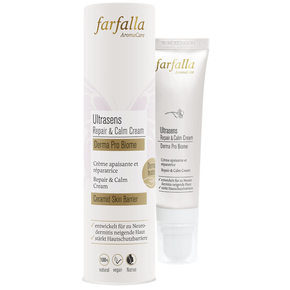 With soothing organic chamomile hydrolate. Has an anti-irritant effect and reduces redness of the skin. Stabilizes the natural lipid layer and the skin microbiome, thus strengthening the natural protective function of the skin. For healthy and balanced skin use for day and night care. Formulated to minimize the risk of allergic reactions. Dermatologically tested. Suitable for sensitive and reactive skin. Application tip: As an ultra-mild face tonic, farfalla chamomile organic plant water is recommended for very dry, sensitive skin — simply spray directly onto the face and allow to dry.