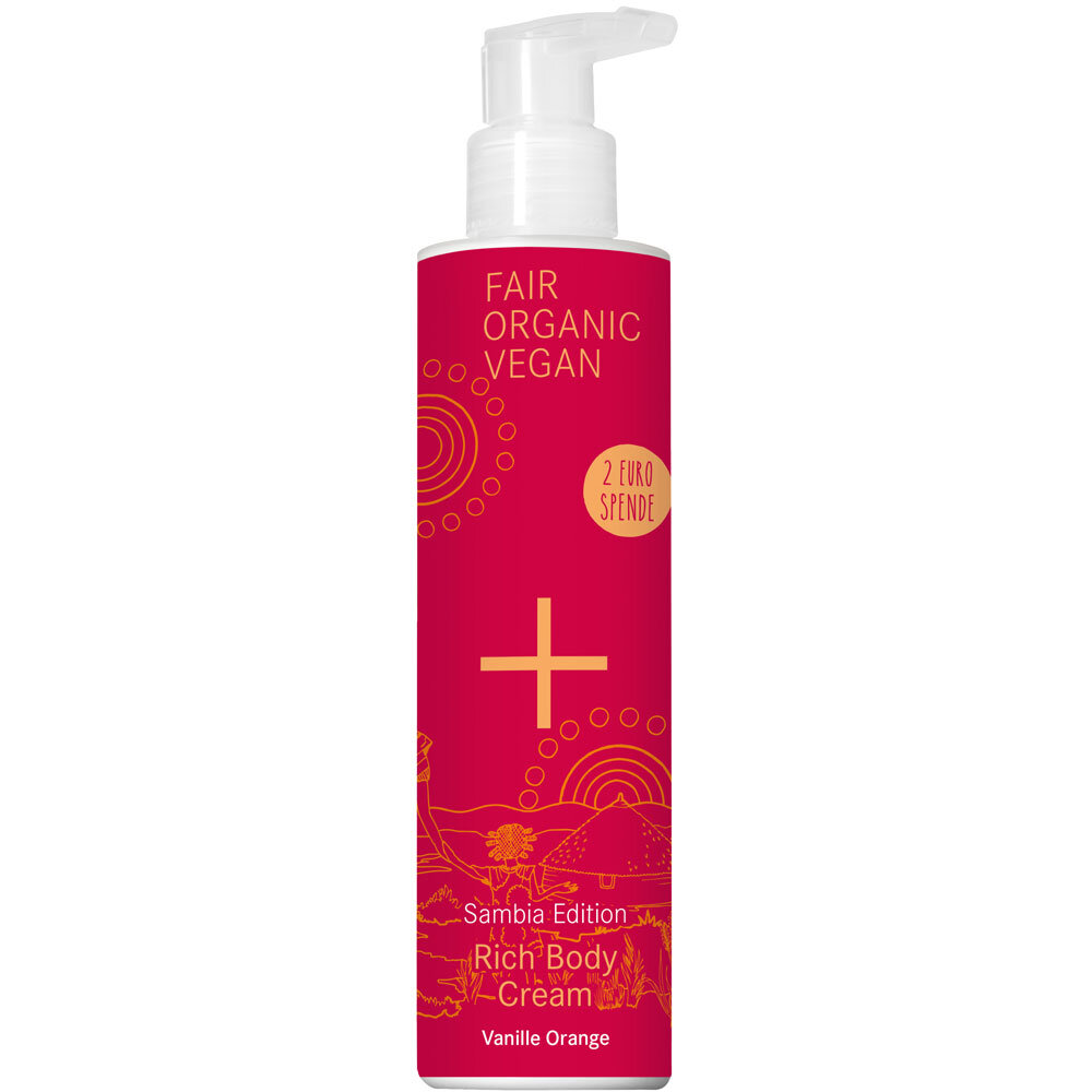 Zambia Edition Rich Body Cream nurtures dry skin with selected fair trade organic oils. At the same time, €2 for each bottle sold, with no deductions, is sent directly to help the work of TWIKATANE – A House for Children and Women’s Shelters for Africa e.V..