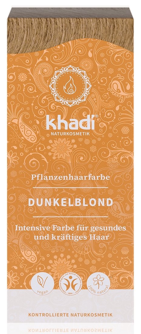 With khadi Hair Color Dark Blonde, you groom your hair while dying it. Effective ingredients such as pomegranate and black walnut provide a rich Color result in hip-ashy dark blonde. Aloe Vera provides intense moisture. khadi Natural Hair Color is 100% vegan and free of synthetic ingredients such as ammonia, peroxides and parabenes.
