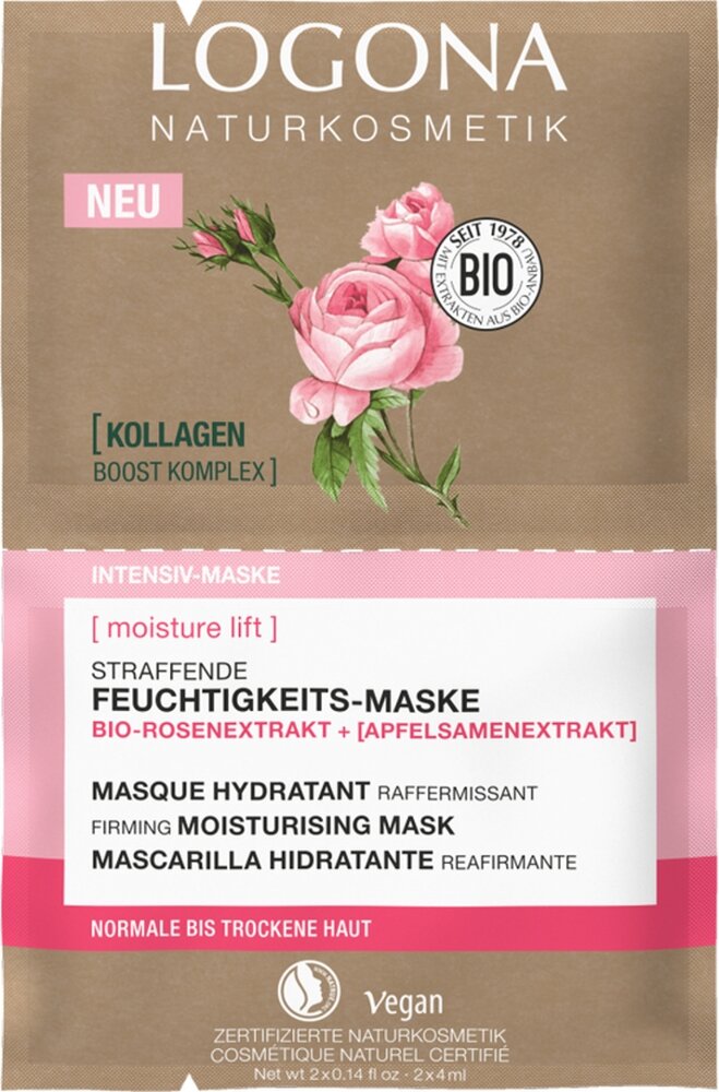 LOGONA MOISTURE LIFT MASK Noticeable immediate effect. Provides the skin with instant moisture. With Bio-damask rose & KalparianeTM. Regular use reduces wrinkles and strengthens the skin's self-protection mechanism.