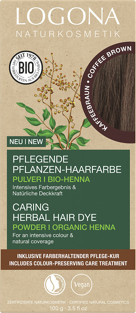 The coffee brown nuance is particularly suitable for medium-blonde to medium-brown hair. The herbal hair colours are especially gentle and lasting. In contrast to chemical hair dyes, they do not intervene with the natural structure of hair. The herbal hair colour covers every hair like a film. As a result, the original hair colour also determines the individual dye result. A composition of organic henna powder* and other colouring plants, in addition to caring botanical ingredients like organic jojoba oil*, provides radiant colour, shine and volume.