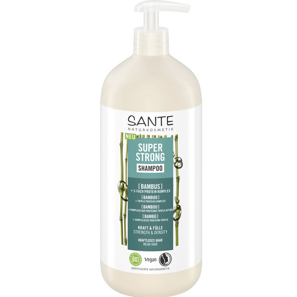 Hair shampoo with aloe vera juice, organic bamboo extract and triple protein complex for bouncy, natural-looking hair without weighing it down. Bamboo extract is known to strengthen the hair and reduce breakage. The hydrating triple protein complex builds up the hair and nourishes it from root to tip. For a naturally strong hair structure.