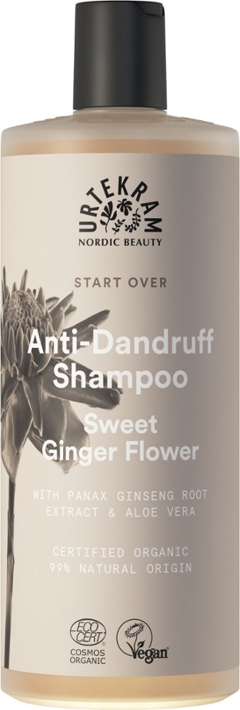 Urtekram Sweet Ginger Flower Anti-Dandruff Shampoo is a gentle anti-dandruff shampoo enriched with panax ginseng root extract to help give a stronger hair and conditioning aloe vera which retains moisture. Apply to wet hair and rinse. For best result complete your hair care routine with matching anti-dandruff conditioner. With the refreshing scent Sweet Ginger Flower. Certified by Ecocert Cosmos Organic, 99% natural origin and vegan.