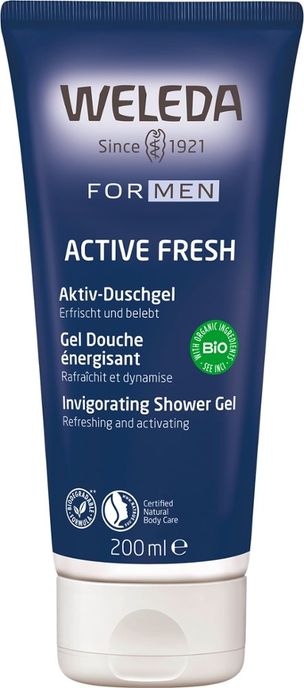 Weleda Men Active Shower Gel invigorates and refreshes skin with mild surfactants derived from coconut and sugar that gently cleanse skin. With 85% organic ingredients and the energizing scent of rosemary, this shower gel is easy to rinse off and leaves skin clean, refreshed and soft.