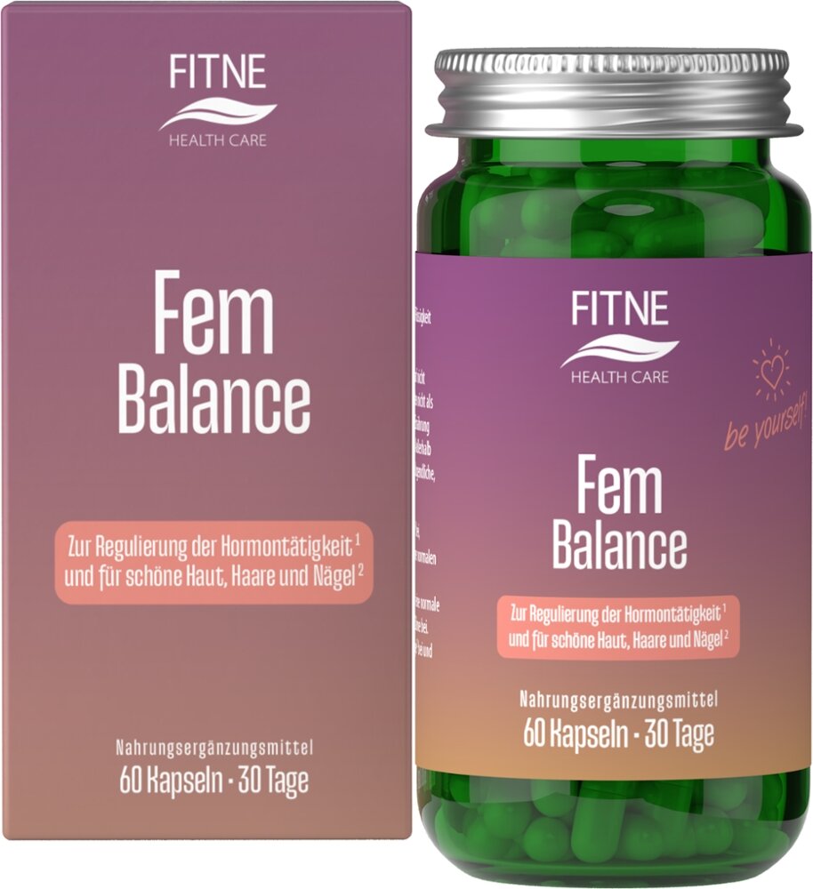 Das Nahrungsergänzungsmittel FemBalance ist ein speziell entwickeltes Produkt fu?r die Zyklusharmonie der Frau. Das Produkt enthält u.a. hochwertige Extrakte aus Mönchspfeffer, Frauenmantel, Eisenkraut, Griffonia und Safran sowie die Vitamine C und B6 und den Mineralstoff Zink. Vitamin B6 unterstu?tzt die normale Hormontätigkeit und trägt zu einer normalen Funktion des Nervensystems und der Psyche bei. FemBalance unterstu?tzt mit seinen natu?rlichen und hormonfreien Inhaltsstoffen ihr Wohlbefinden in jeder Lebenslage (z. B. bei PMS-Symptomen oder während der Menstruation).