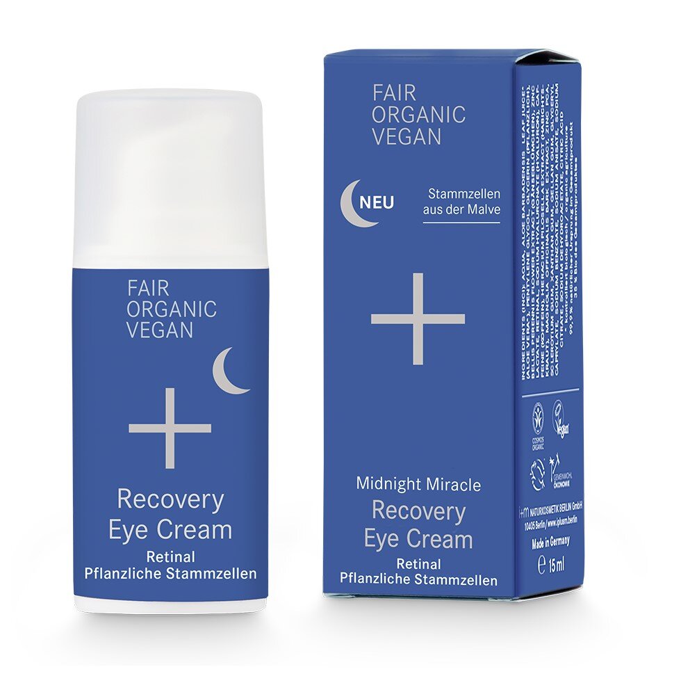 Speziell für die abendliche Anwendung entwickelt, pflegt die edle Midnight Miracle Recovery Eye Cream die empfindliche Augenpartie besonders sanft und versorgt sie über Nacht mit wertvollen Wirkstoffen. Die parfumfreie Formulierung kombiniert natürliches Retinal mit pflanzlichen Stammzellen aus der Malvenblüte – für wohltuende Pflege, welche die Augenpartie am Morgen erfrischt und strahlend erscheinen lässt.