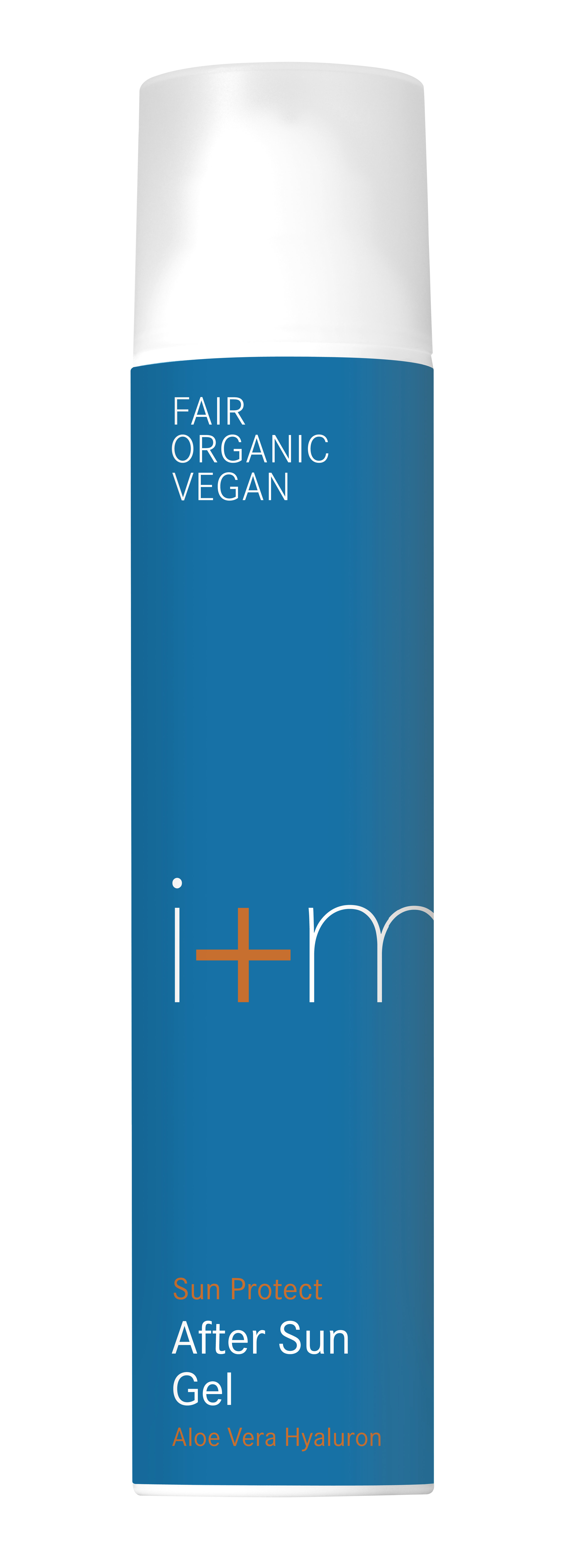 Das After Sun Gel bietet der Haut nach dem Sonnenbad die nötige Erfrischung und beruhigende Pflege mit einem Bio-Rohstoffen aus fairem Handel. Das leicht kühlen-de Gel versorgt die Haut optimal mit Feuchtigkeit und unterstützt so eine natürlich langanhaltende Bräune. Das vegane After Sun Gel ist die natürliche Regenerations-pflege für sonnenstrapazierte Haut für alle Hauttypen. Bio Aloe Vera aus fairem Han-del und botanische Hyaluronsäure spenden sofort intensive Feuchtigkeit und können Spannungsgefühle lindern. Das aus der Kamille gewonnene Bisabolol pflegt und be-ruhigt die von der Sonne gereizte Haut. Das i+m After Sun Gel lässt sich dank seiner leichten Textur hervorragend verteilen und zieht schnell ein, ohne zu kleben. Milder Minzextrakt sorgt für die sanfte Abkühlung schon beim Auftragen. Der vitalisierende Duft nach minziger Orange erfrischt Körper und Geist nach einem heißen Sonnentag.