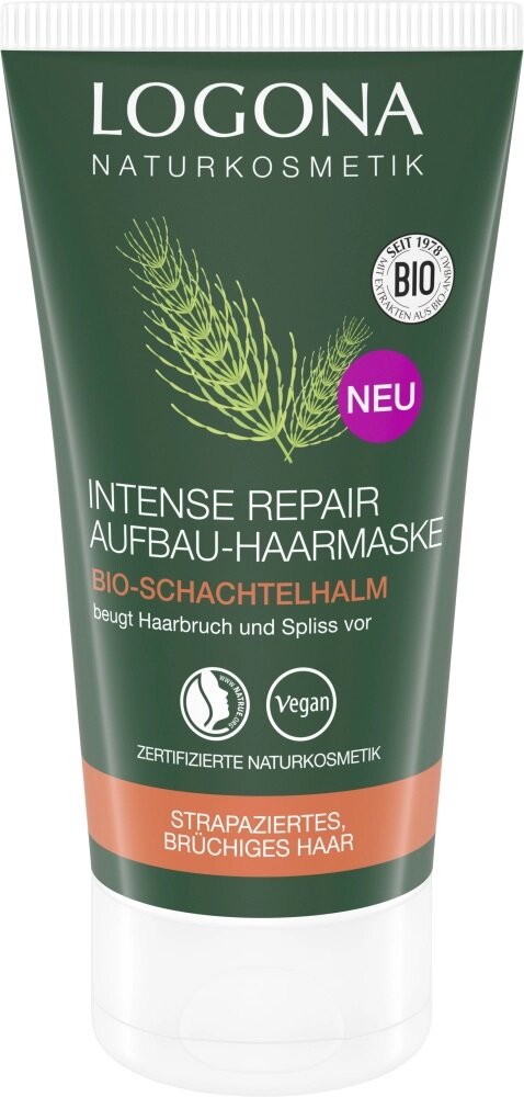 Die LOGONA INTENSE REPAIR AUFBAU-HAARMASKE mit hauseigenem Bio-Schachtelhalmextrakt, Bio-Inca-Inchi-Öl, Bio-Sheabutter und Bio-Aloe Vera repariert strapaziertes, brüchiges Haar und beugt Haarbruch und Spliss vor. Die tiefenwirksame vegane Repair-Formel rein natürlichen Ursprungs stärkt die Widerstandskraft des Haares, spendet intensive Feuchtigkeit und wirkt Frizz entgegen. Schachtelhalm ist bekannt dafür, brüchiges Haar zu stärken und die Haarstruktur zu verbessern. Für leichte Kämmbarkeit und gesund glänzendes Haar, ohne zu beschweren. Für höchste Bio-Qualität und reinste Wirksamkeit unseres hauseigenen Extrakts verarbeiten wir den Bio-Schachtelhalm mit einem speziellen und schonenden Extraktionsverfahren direkt auf der Kräuterwiese in Salzhemmendorf.