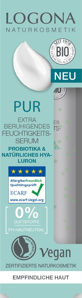 Das PUR EXTRA BERUHIGENDE FEUCHTIGKEITSSERUM natürlichen Ursprungs pflegt empfindliche Haut mit extra intensiver Feuchtigkeit und ist dabei besonders verträglich. Die ph-hautneutrale, erfrischende Textur mit natürlichem Probiotika & Hyaluron unterstützt die Hautschutzbarriere und mildert Hautirritationen wie Spannungsgefühle, Rötungen und Kribbeln: natürlich pur, vegan & ohne Parfum. Dermatologisch getestet.
