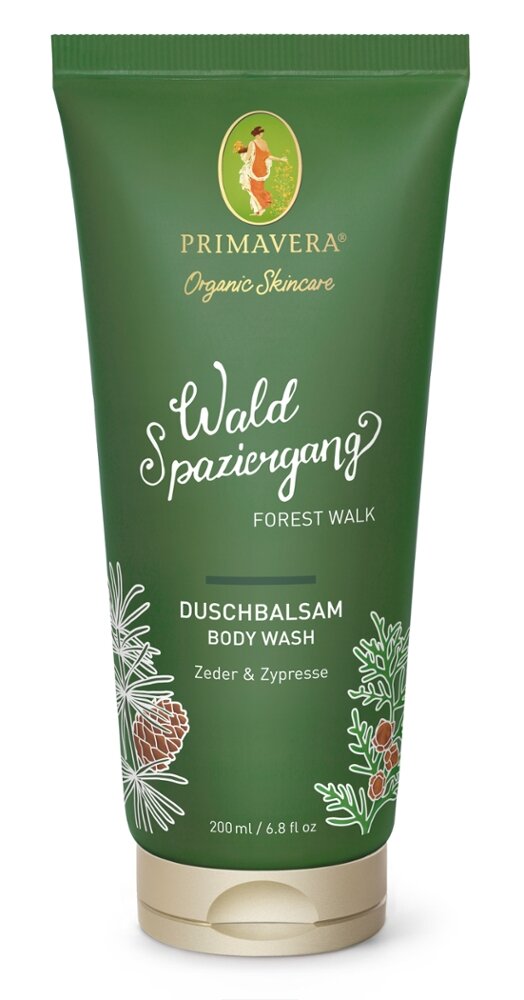 Erlebe neue Kraft und Klarheit mit natürlicher Wohlfühlpflege. Der cremige Duschbalsam Waldspaziergang ist eine naturreine Pflanzenkraft-Komposition aus Bio Aprikosenkernöl, Bio Chiasamenöl und Bio Rosmarin Extrakt. Er reinigt sanft und pH-hautneutral mit milden Zuckertensiden, bewahrt die natürliche Feuchtigkeit der Haut, wirkt rückfettend und lässt Dich pures Wohlgefühl erleben. Tauche ein in die einzigartige Duftwelt des Waldes und fühl Dich geerdet und kraftvoll. Mit Bio Zeder und Bio Zypresse schenkt Dir der Duschbalsam Waldspaziergang Klarheit und Erfrischung. In die feuchte Haut massiert und danach gut abgespült, wirkt er belebend auf Körper und Sinne und verschafft Dir Deinen ganz eigenen kraftvollen Duftmoment.