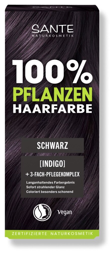 Die SANTE Pflanzenhaarfarbe schwarz eignet sich speziell und ausschließlich für dunkelbraunes Haar. Das Färbeergebnis ist ein sattes Tiefschwarz. Bei grauem Haar sollte die SANTE Pflanzenhaarfarbe schwarz nur als Mischung mit anderen Nuancen verwendet werden.