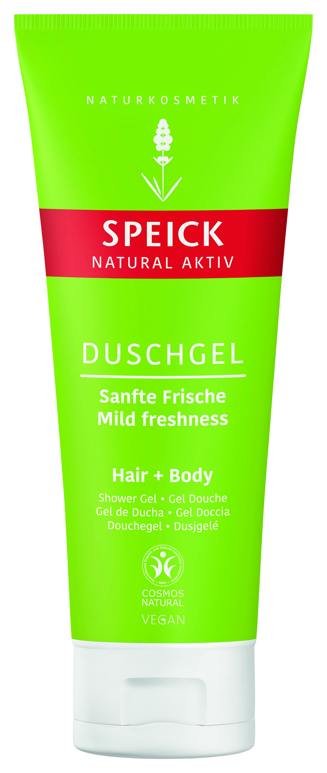 Enthärtetes Wasser, Waschrohstoff (Kokosölbasis), Waschrohstoff (Zuckerbasis), Kochsalz, Glyzerin (pflanzlich), Rückfettung (pflanzliche Basis), Hydrolysiertes Weizenprotein mit konditionierenden Eigenschaften, Speick-Pflanzenextrakt (Pflanze aus kontrolliert biologischer Wildsammlung), Salbei-Extrakt (kbA), Orangen-Öl, Tensid, Komposition ätherischer Öle, Weingeist, Zitronensäure, Salz der Sorbinsäure (Konservierung), Salz der Benzoesäure (Konservierung).