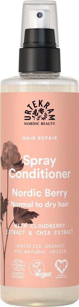 Der Nordic Berry Spray Conditioner ist eine Leave-In Pflege, die speziell geschädigtes und dehydriertes Haar intensiv pflegt. Stärkender Chia-Extrakt und vitaminreicher nordischer Moltebeerextrakt nähren und revitalisieren die Haarstruktur. Bio-Aloe Vera und Glycerin spenden intensiv Feuchtigkeit, was die Kämmbarkeit verbessert und dem Haar natürliche Geschmeidigkeit verleiht. Für kraftvolles Haar mit neuer Widerstandskraft, umhüllt vom fruchtig-frischen Duft nordischer Beeren.