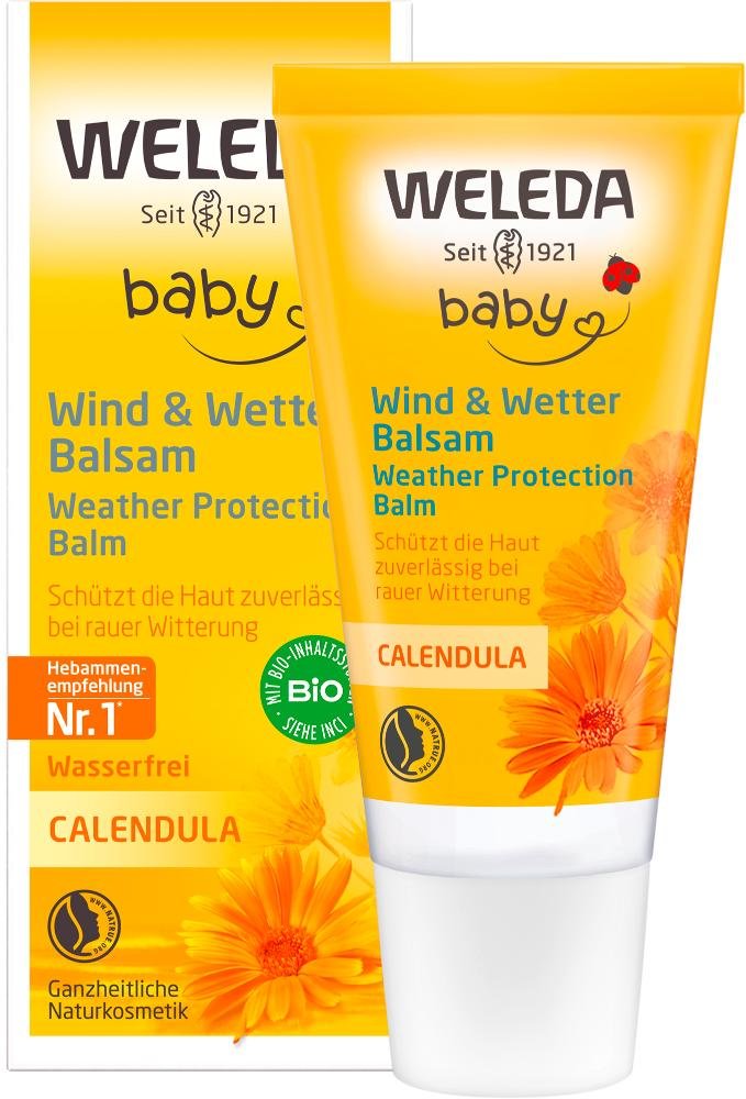 Wenn es bei Regen oder Schnee hinaus ins Freie geht, braucht Baby- und Kinderhaut einen besonders intensiven Schutz. Der reichhaltige Weleda Calendula-Wind- und Wetterbalsam schützt zarte Gesichtshaut und kleine Hände zuverlässig vor Kälte, Wind und rauer Witterung. Reines Bienenwachs und hautverwandtes Wollwachs bilden eine natürliche Schutzbarriere, ohne die Hautatmung zu beeinträchtigen. Wertvolles Mandelöl pflegt auch trockene, strapazierte Haut fühlbar geschmeidiger und ein Heilpflanzenauszug aus kontrolliert-biologisch angebauter Calendula beruhigt die Haut.