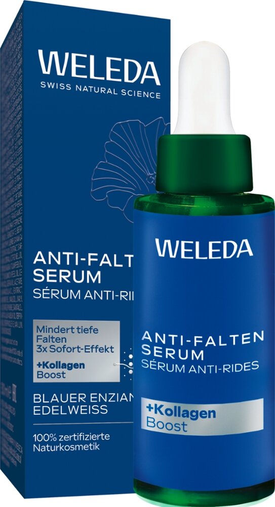 Spürbare Festigkeit, Feuchtigkeits-Boost, sichtbar straffere Haut: Das Anti-Falten Serum mit unserem innovativen Collagen+ Active Complex aus blauem Bio-Enzian, Bio-Edelweiß und Cica erhöht die Festigkeit der Haut und reduziert tiefe Falten bereits in 2 Wochen. Die Hautbarriere wird gestärkt und die Haut fühlt sich elastischer an.