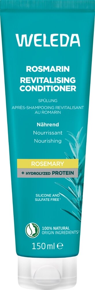 Der Rosmarin Revitalising Conditioner mit Bio-Jojobaöl, hydrolisierten Proteinen und Arginin pflegt dein Haar und erhält das Haarvolumen.