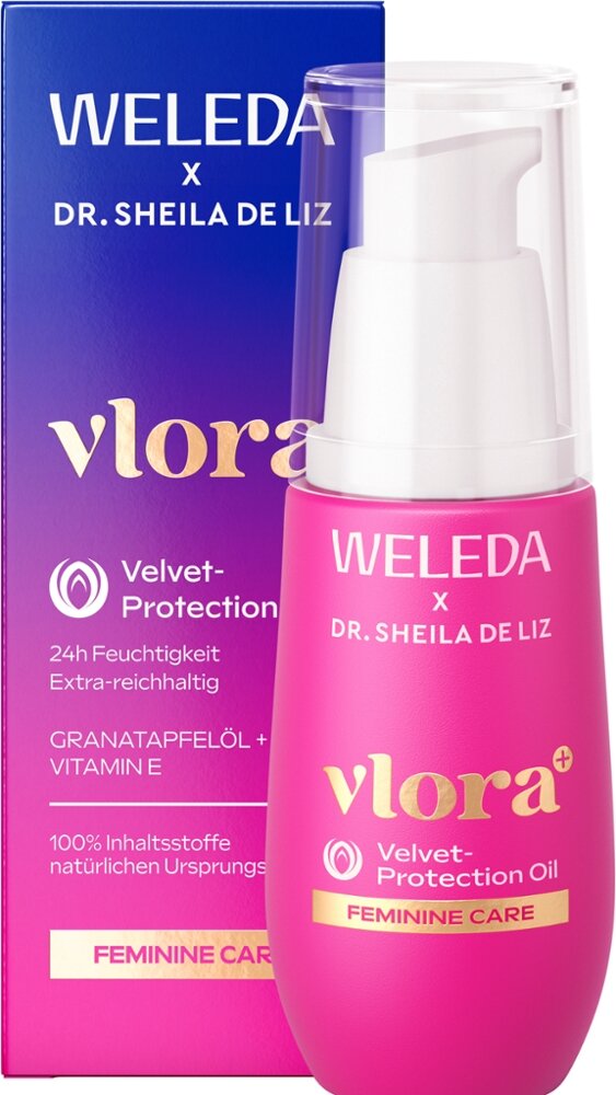 Wenn sich das Herz deiner Weiblichkeit nach einer Extraportion Pflege und Schutz sehnt, dann verwöhne sie mit dem neuen Vlora+ Velvet Protection Oil. Es wurde mit der Expertise von Dr. Sheila de Liz speziell für den sensiblen Intimbereich entwickelt. Damit du dich als Frau wohlfühlen kannst, auch bei gestresster Haut oder trockenheitsbedingtem Spannungsgefühl, schenkt dieses Öl deiner Haut 24h Feuchtigkeit und Regeneration.