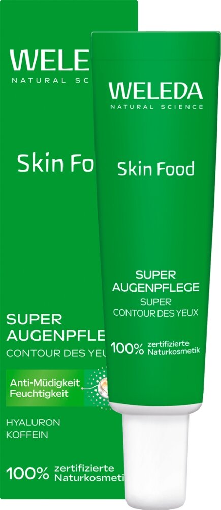 Verleihe deinen müden Augen einen echten Wake-up-Moment mit unserer neuen?nährenden?Super Augencreme! Sie powert mit Koffein, Hyaluronsäure und der Skin Food Phyto-Infusion aus 100 % natürlichen Pflanzen-Extrakten von Rosmarin,?Calendula, Kamille und Stiefmütterchen. Die feuchtigkeitsspendende, mikrobiom-freundliche Creme weckt die Haut rund um die Augen sofort auf und schenkt dir einen wachen,?strahlenden?Blick. Die Formel reduziert Augenringe und Schwellungen, spendet?sofort?Feuchtigkeit.